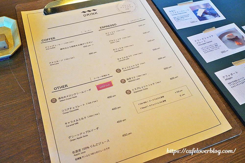 フード等はなく、コーヒーとスイーツが中心のラインナップ。